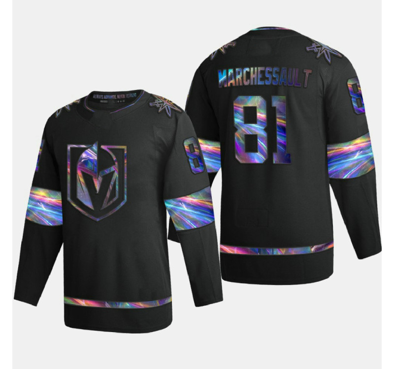 - Product ID: VGK-0000205 Men Vegas Golden Knights Jonathan Marchessault #81 Iridescent Holographic Collection Authentic Black Jersey
