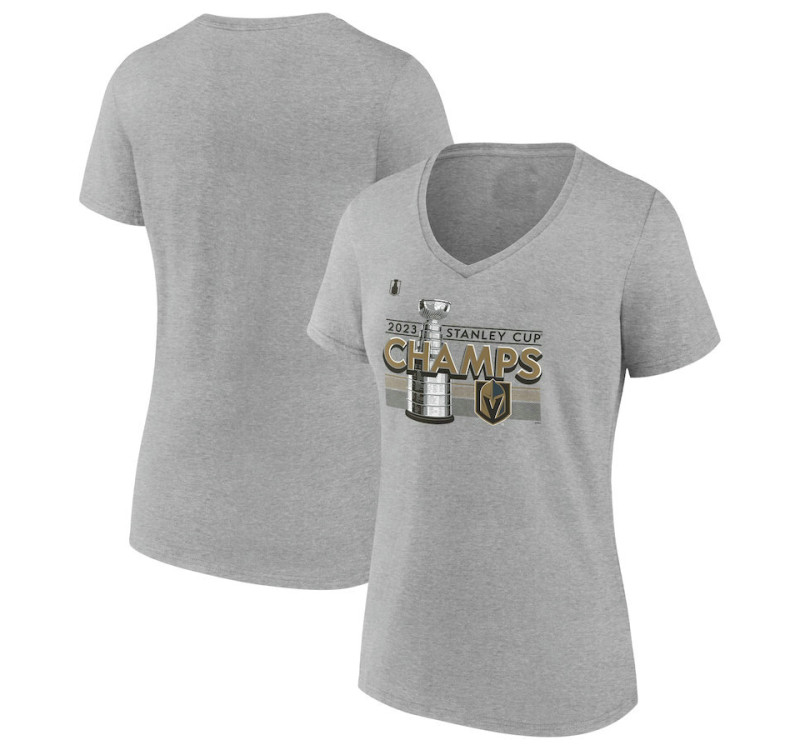 - Product ID: VGK-0000778 Vegas Golden Knights Women's 2023 Stanley Cup Champions Locker Room Plus Size V-Neck Heather Gray T-Shirt