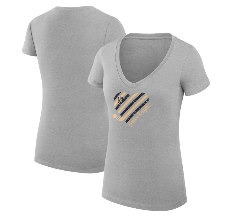 - Product ID: VGK-0000863 Vegas Golden Knights G-III 4Her by Carl Banks Women's Heart V-Neck Fitted Heather Gray T-Shirt