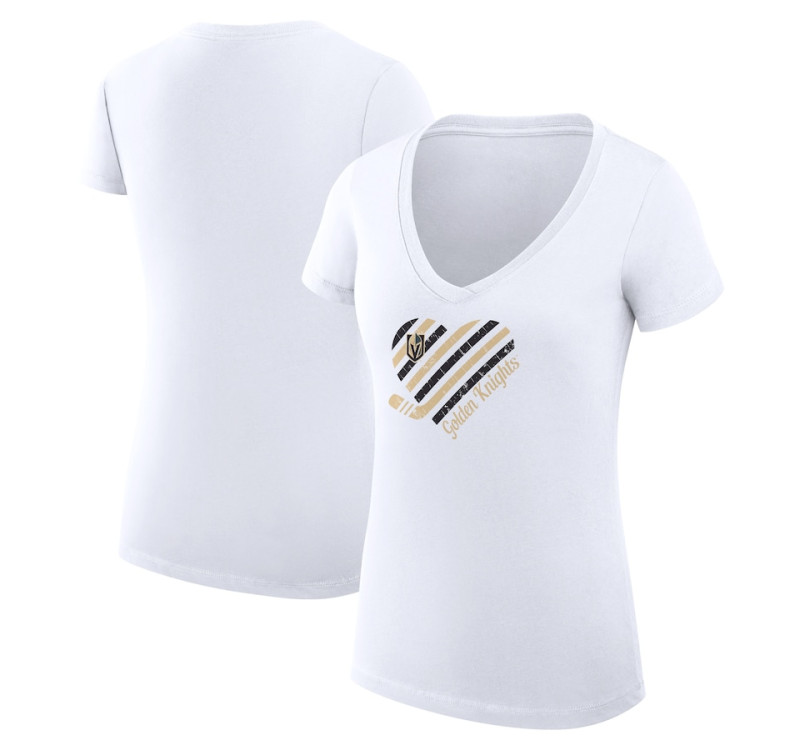 - Product ID: VGK-0000854 Vegas Golden Knights G-III 4Her by Carl Banks Women's Heart V-Neck Fitted White T-Shirt