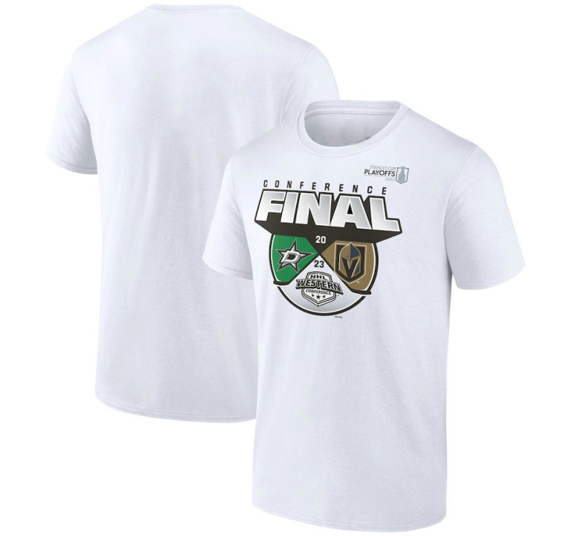 - Product ID: VGK-0000850 Vegas Golden Knights vs. Dallas Stars 2023 Stanley Cup Playoffs Western Conference Final Matchup White T-Shirt
